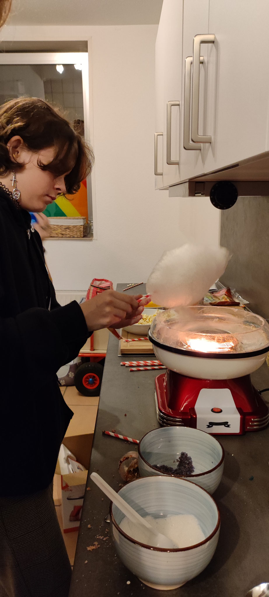 Die ganze Nacht wurde gequatscht, gezockt, gemeinsam gekocht, Popcorn gemacht, Filme geschaut, Zuckerwatte gemacht, gechillt und sich vernetzt. Highlight war unsere Stickmaschine, mit der die Jugendlichen ihr eigenes Design auf einen Pullover sticken lassen konnten.