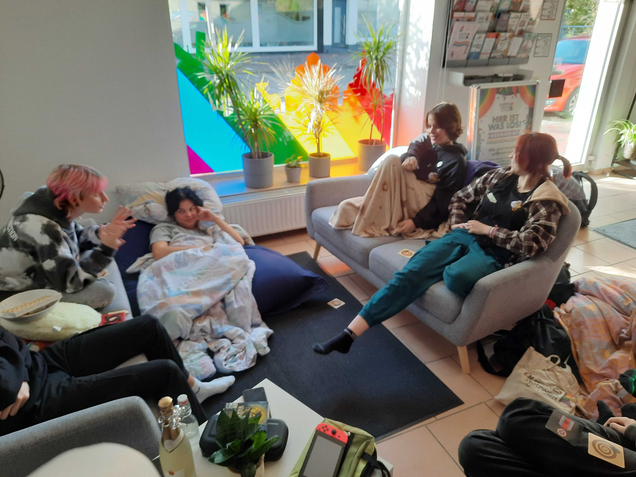 Am Samstagabend ging es los und die ersten Teilnehmenden reisten mit Matratzen, Isomatten und Decken an. Alle richteten ihren persönlichen Schlafplatz irgendwo im Spektrum ein, auch wenn der nicht unbedingt genutzt wurde.
