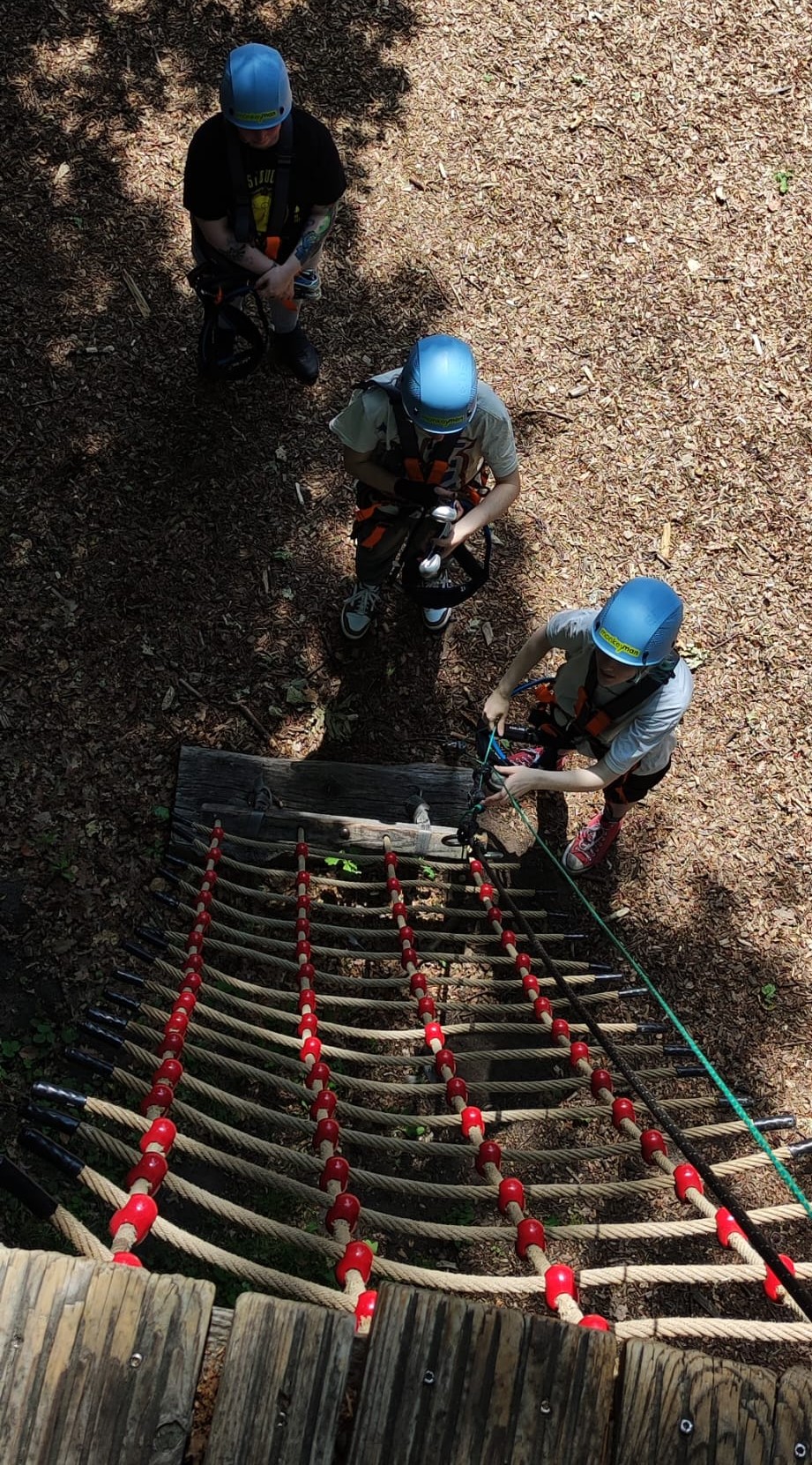 Schwierigkeitsstufe 1 (leicht) bis 5 (schwer) reichten. Wir bildeten kleine Gruppen, um je nach Können und Mut gemeinsam die Parcours zu erklimmen.