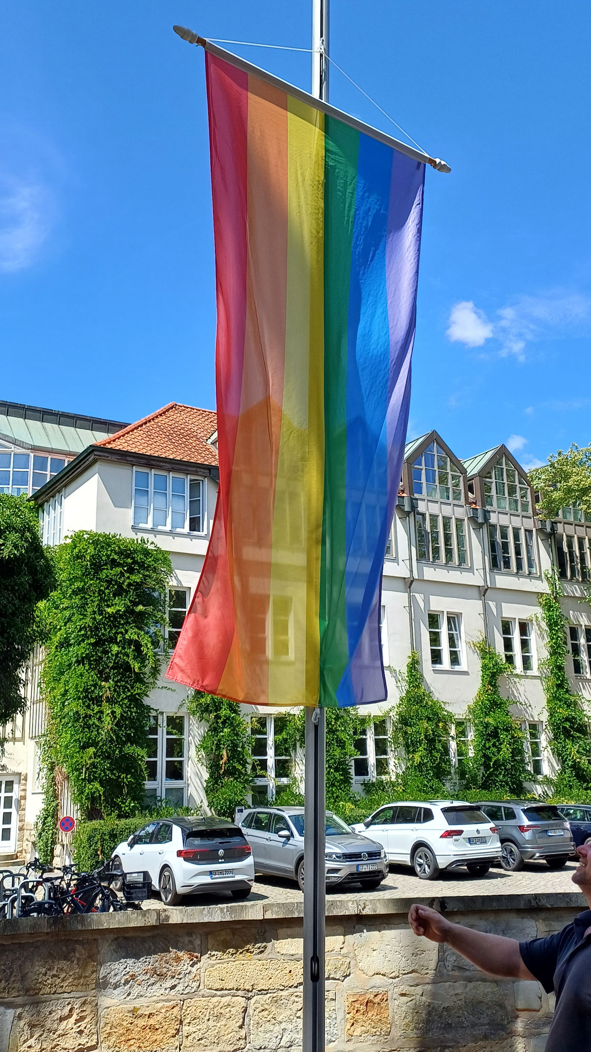 Am Donnerstag, den 10. Juli 2025, sendete der Landkreis Gifhorn ein wichtiges Signal für Vielfalt und Akzeptanz! Um 13:30 Uhr wurde die Regenbogenflagge feierlich am historischen Schloss Gifhorn gehisst.