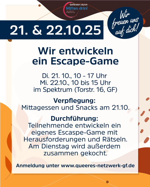 Du liebst Rätsel und spannende Challenges? Egal ob langjähriger Escape-Game-Fan oder Neueinsteiger – Komm vorbei und plane und entwickle mit uns ein eigenes Escape-Game mit Herausforderungen und
